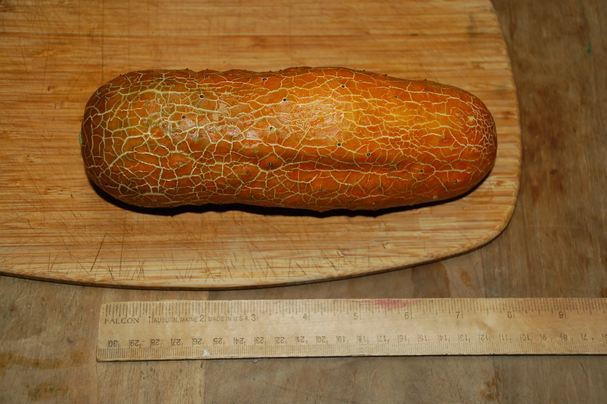 I’m not sure what the popcorn looks like inside the husks yet, although I should probably try to find out soon. But the plants have given me a preview, with what seem to be individual kernals growing straight off the stalk. Super weird. Even more weird, I have a beet that is two and a half years old. It has grown little baby beets on top of itself. It has gone to seed two or three times. The primary beet is maybe the size of a cantaloup. I’m sure it’s as hard as a rock. And finally, I harvested a Joseon shorty today, my first one. I’m not one to use the word rad, but they’re pretty rad. And crispy and delicious. Certainly a hint of melon in there. But as far as looks go, well… see for yourself.